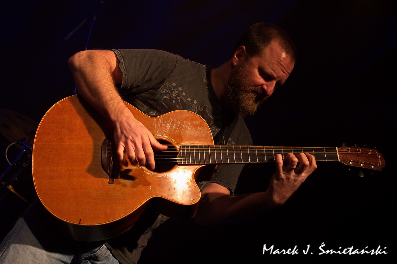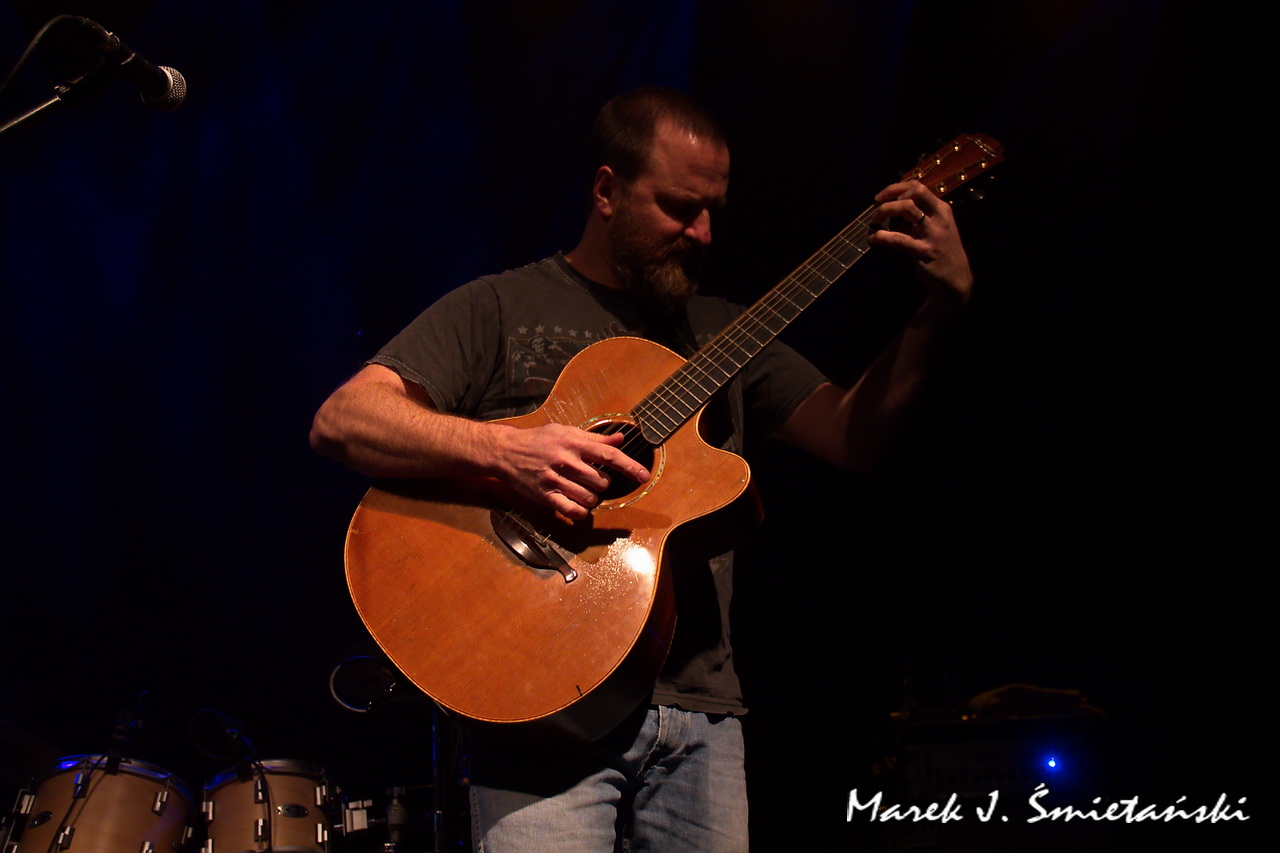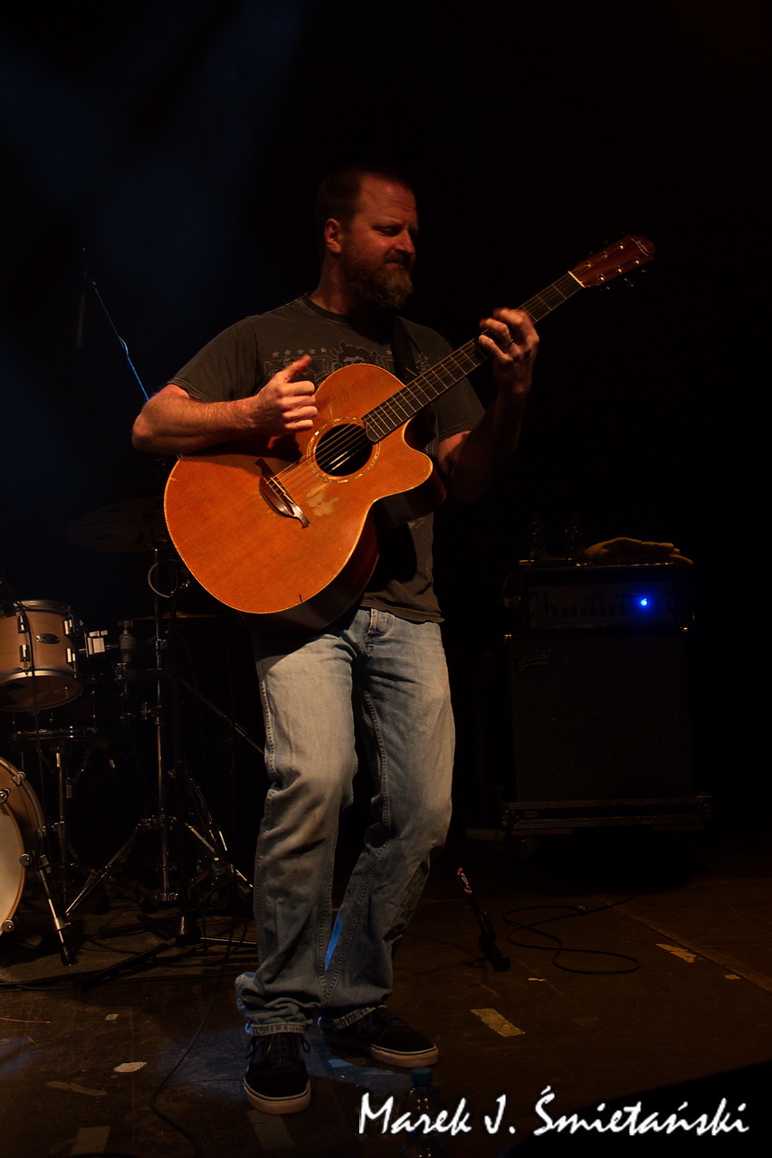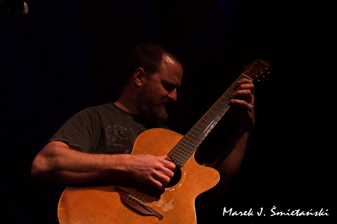 Pochodzący ze stolicy USA gitarzysta akustyczny Jeff Aug jest w Polsce raczej mało znany. Prezentując zdjęcia z jego występu jako supportu Axel Skolnick Trio, wypada zatem choć w kilku zdaniach przybliżyć sylwetkę tego zdolnego muzyka. Sam siebie określa jako gitarzystę fingerstyle, choć jego podejście do stylu jest cięższe i bardziej energetyczne niż tradycyjne. Nie tylko koncertuje solowo i wydaje autorskie płyty, ale jego nazwisko łączy się z naprawdę znanymi wykonawcami. Miał okazję występować z Allanem Holdsworthem i Albertem Lee, grupami Soft Machine, Jawbox, Shudder To Think, a nawet z Ice-T & Bodycount. Od kilkunastu lat towarzyszy nie tylko w nagraniach, ale również na koncertach brytyjskiej poetce i wokalistce Anne Clark. Jeff jest rekordzistą Guinnessa jako wykonawca największej liczby (tj. dziewięciu) koncertów w różnych krajach w ciągu 24 godzin (o szczegółach można przeczytać tutaj).