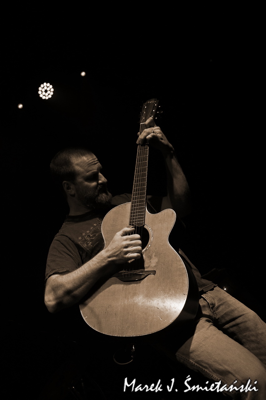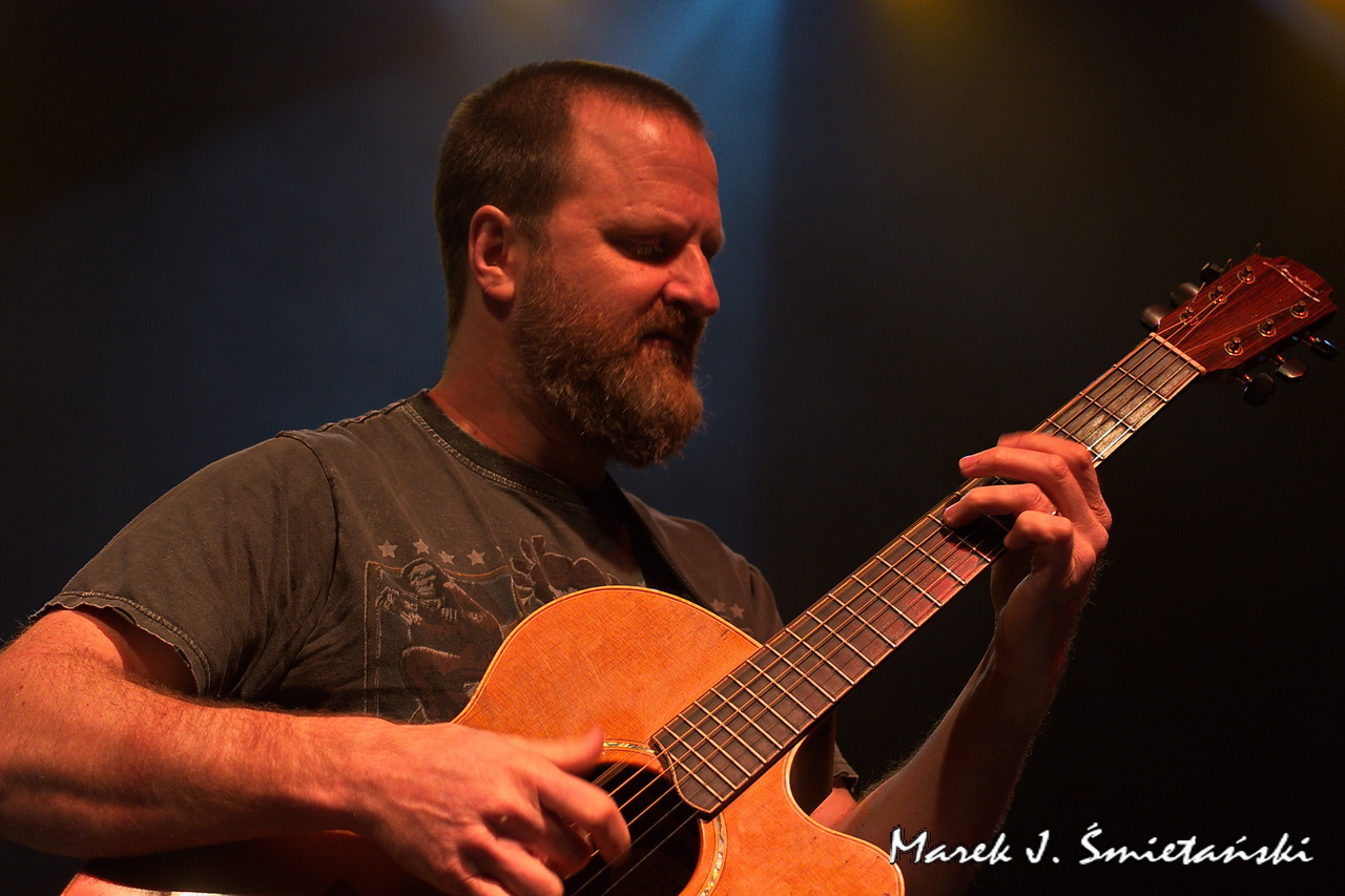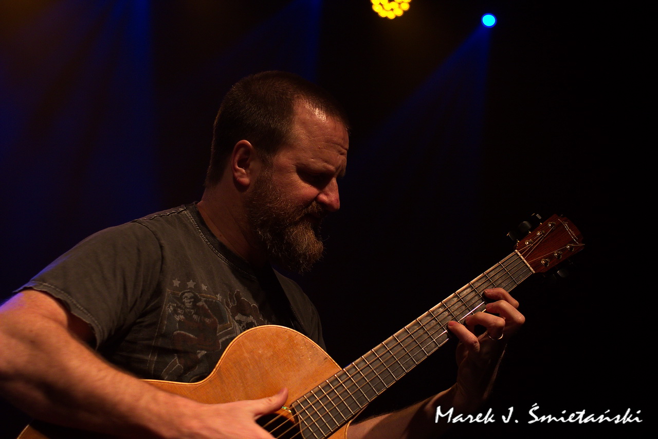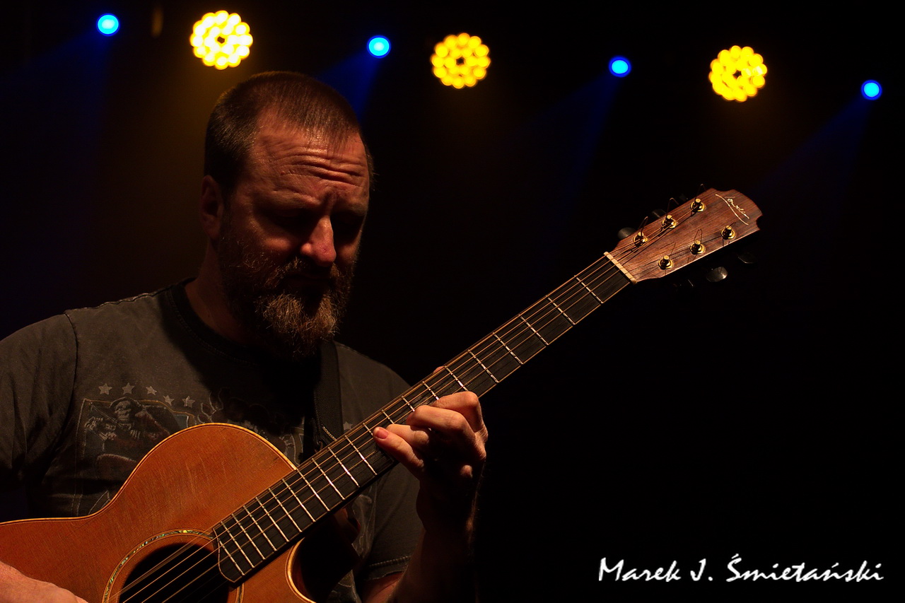 Pochodzący ze stolicy USA gitarzysta akustyczny Jeff Aug jest w Polsce raczej mało znany. Prezentując zdjęcia z jego występu jako supportu Axel Skolnick Trio, wypada zatem choć w kilku zdaniach przybliżyć sylwetkę tego zdolnego muzyka. Sam siebie określa jako gitarzystę fingerstyle, choć jego podejście do stylu jest cięższe i bardziej energetyczne niż tradycyjne. Nie tylko koncertuje solowo i wydaje autorskie płyty, ale jego nazwisko łączy się z naprawdę znanymi wykonawcami. Miał okazję występować z Allanem Holdsworthem i Albertem Lee, grupami Soft Machine, Jawbox, Shudder To Think, a nawet z Ice-T & Bodycount. Od kilkunastu lat towarzyszy nie tylko w nagraniach, ale również na koncertach brytyjskiej poetce i wokalistce Anne Clark. Jeff jest rekordzistą Guinnessa jako wykonawca największej liczby (tj. dziewięciu) koncertów w różnych krajach w ciągu 24 godzin (o szczegółach można przeczytać tutaj).